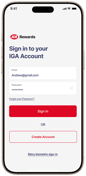 If you already have an IGA Rewards or IGA Shop Online account, download the IGA Rewards app and simply use your existing username and password to sign in.