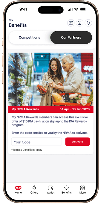 Check your email from the NRMA for information on how to redeem this offer in the IGA Rewards app.